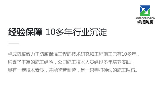 浙江卓成防腐工程有限公司(原名上虞市達成防腐工程有限公司)成立于2005年,注冊資本1000萬元,是一家專業(yè)承包防腐保溫工程施工企業(yè),公司座落在紹興市杭州灣上虞經(jīng)濟技術(shù)開發(fā)區(qū)。公司現(xiàn)有職工60余人,其中專業(yè)技術(shù)人員15人,公司下設(shè)多個項目經(jīng)理部。公司致力于防腐保溫工程的技術(shù)研究和工程施工,生產(chǎn)設(shè)備齊全,技術(shù)工藝先進,積累了豐富的施工經(jīng)驗,具有較雄厚的經(jīng)濟實力。公司施工技術(shù)人員經(jīng)過多年培養(yǎng)實踐,具有一定技術(shù)素質(zhì),并能吃苦耐勞,是一只善打硬仗的施工隊伍。